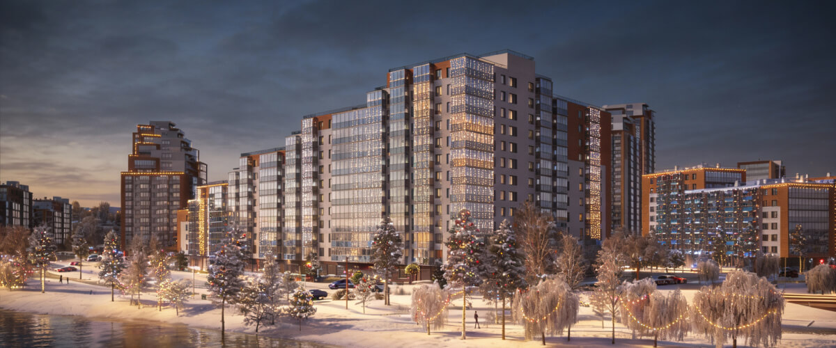 Это жилой комплекс «Talojarvi. Город у воды», который компания строит на первой береговой линии Онежского озера в районе пересечения улицы Зайцева и Соломенского шоссе.