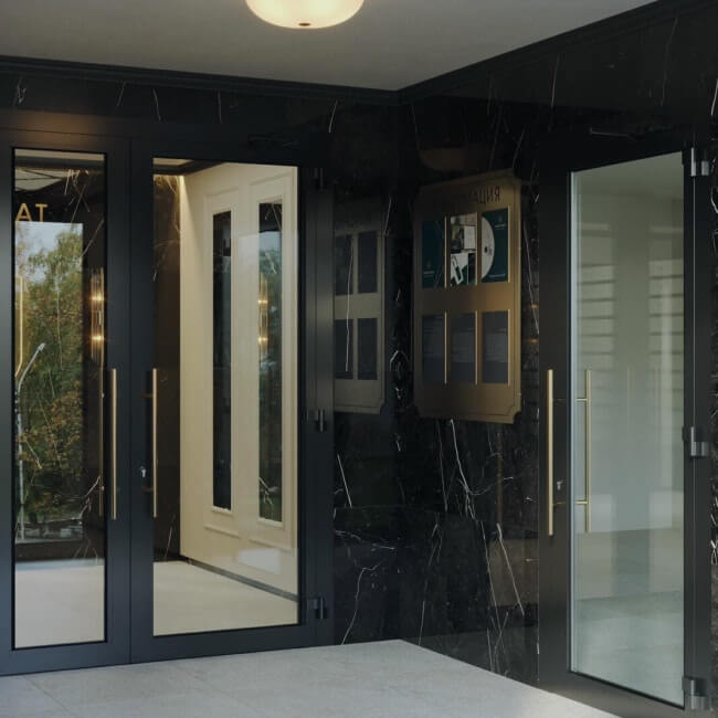 Подъезд в доме Аристократ– это авторское оформление холлов с вместительными колясочными на первом этаже. Скоростные бесшумные лифты и видеонаблюение.