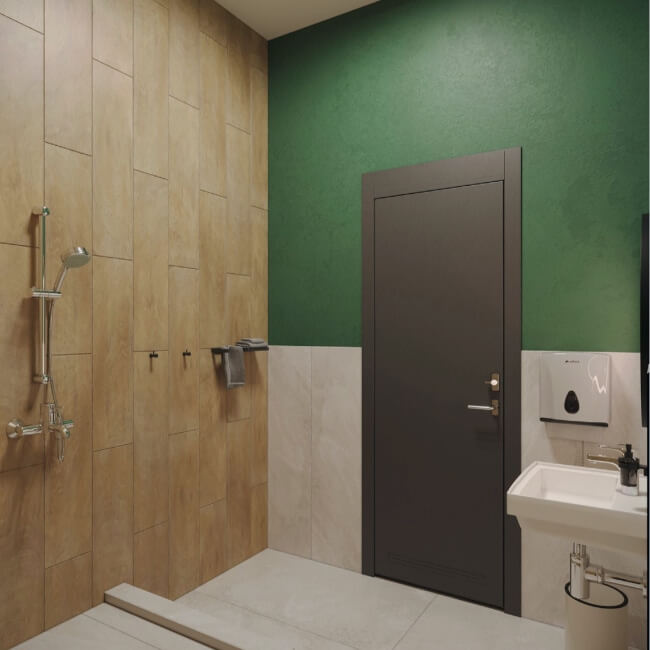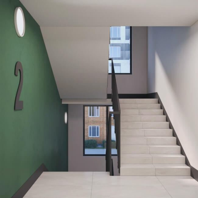 Холлы выполнены по индивидуальному дизайн проекту: предусмотрены зона ожидания, место для хранения колясок и велосипедов