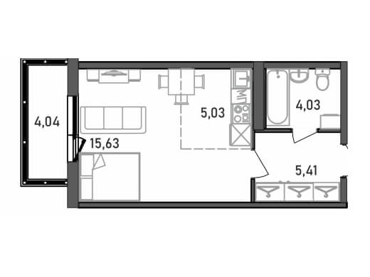 3-комнатная квартира, 45,68 м2