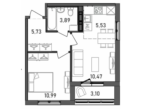 2-комнатная квартира, 42,49 м2