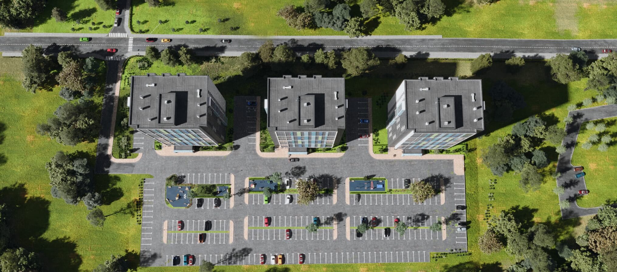 Комплекс состоит из трех семнадцатиэтажных домов